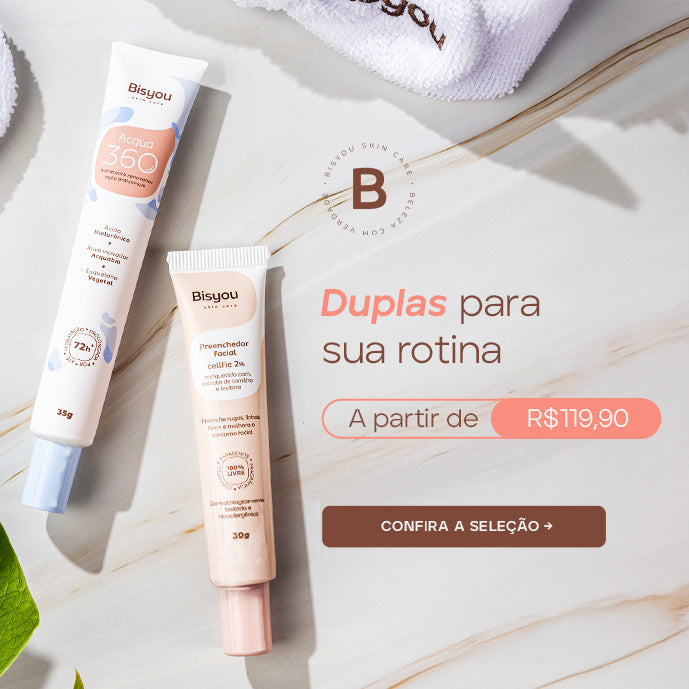 conheça um pouco da BisyouA Bisyou é uma marca brasileira, nativa digital, que nasceu com a missão de revolucionar o mercado de skincare. Com uma abordagem que combina ciência avançada e tecnologia de ponta, desenvolvemos produtos de cuidados com a pele que são tanto inovadores quanto acessíveis.